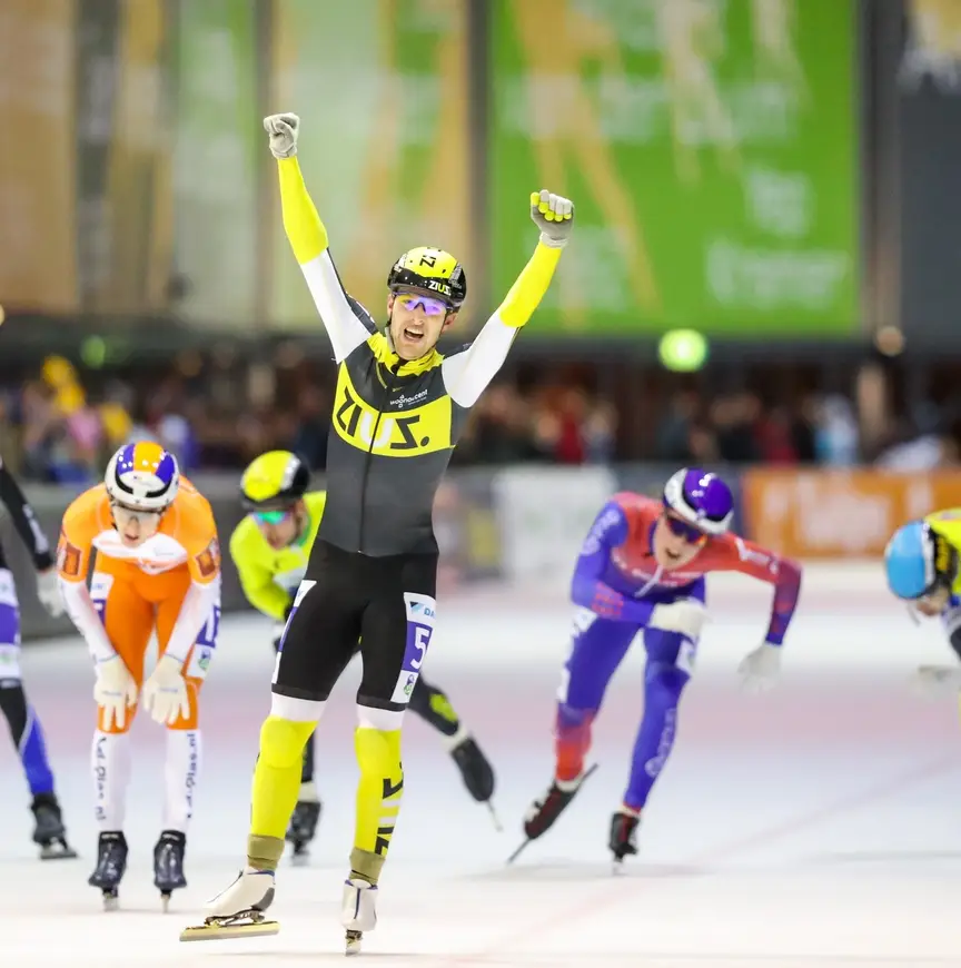 In de bocht voor de finish ontstonden gedurende de koers de nodige gaten en scheuren in het ijs, wat voor een flink aantal valpartijen zorgden. Onder meer Christiaan Hoekstra en Casper de Gier behoorden tot de slachtoffers. Ook in de finale speelde het ijs in die bocht een belangrijke rol. Gary Hekman ging met twee ronden op het bord de sprint aan en kreeg Crispijn Ariëns en Sjoerd den Hertog met zich mee. Daarachter zaten nog Daniel Niero en de broers Evert en Bart Hoolwerf. "Dat was best prima", aldus Bart. "Ik ging over Crispijn heen en wilde me stil laten vallen zodat iedereen erop zou knallen. Daniel gaat alleen ineens naar binnen, maar ik houd mijn lijn en gebruik mijn handen niet."