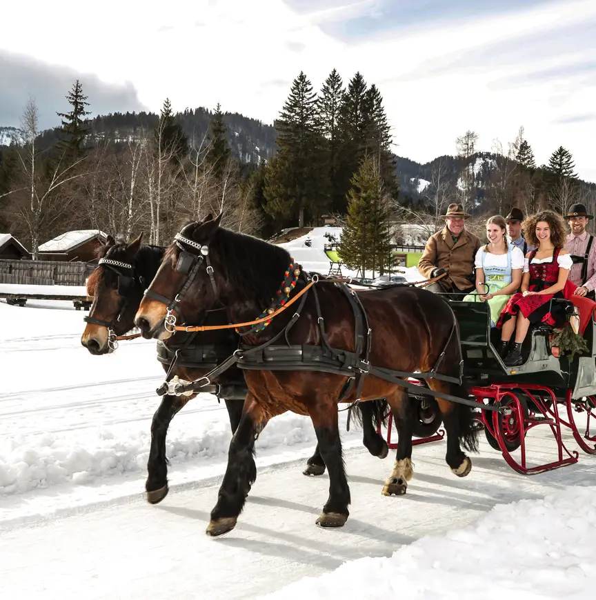 Ariëns zet ondertussen de typische alpenhoed op. En verdomd, het staat hem ook nog. Even later staan de vier kampioenen in de sneeuw, nauwelijks te onderscheiden van echte Oostenrijkers. En als ze even later mogen plaatsnemen op de koets van Winkler voor een ritje naar het meer, is het compleet. "Nog niks gewonnen, maar die rit op de slee hebben we alvast te pakken", grapt Van der Geest.