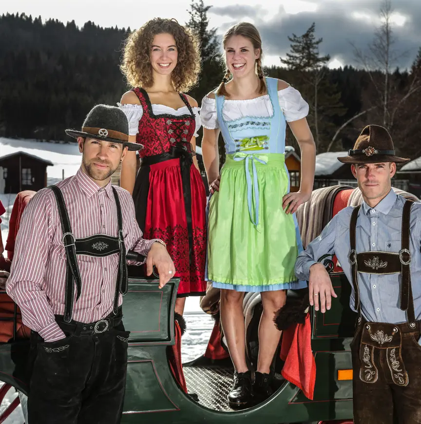 Gezellige drukte bij Landhaus Pfeiferhof, het onderkomen van Helmut Winkler. De aimabele Oostenrijker rijdt niet alleen met zijn koets over de Weissensee, maar heeft ook nog een mooie collectie traditionele kleding. En precies daar komen we voor. Crispijn Ariëns, Ingmar Berga, Lisa van der Geest en Ineke Dedden kunnen een lach niet onderdrukken als ze de dirndls en lederhosen klaar zien liggen. Tijd voor een metamorfose!