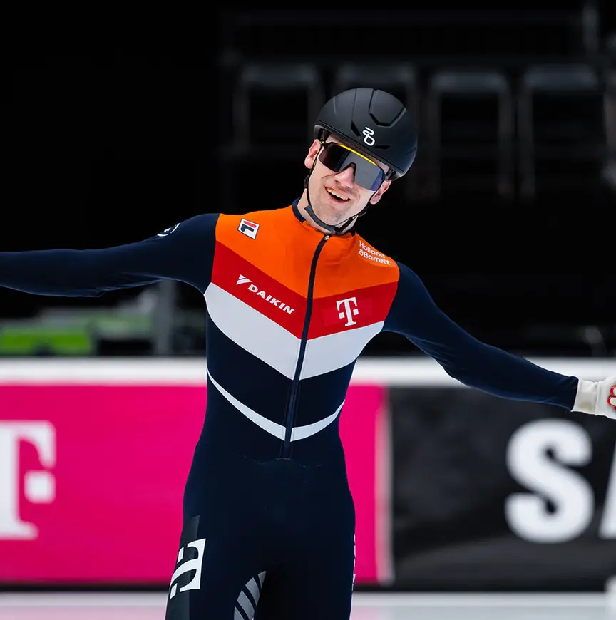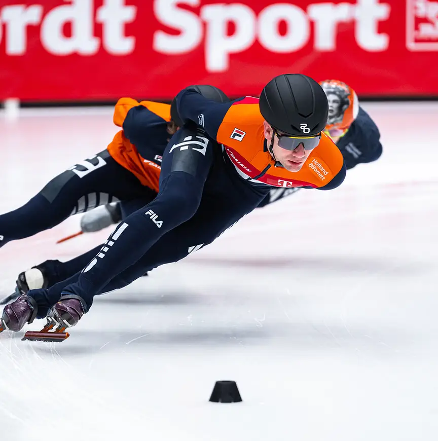 Zijn telefoontje was overbodig. Kay Huisman, Westlander van geboorte, is dit seizoen namelijk een regular in het circuit van de World Cup voor shorttrackers. Geen vrijwillige track steward of ijsreparateur in een witte wegwerpoverall meer, zoals een jaar geleden in Dordt; nee, hij strijdt mee om de medailles. Zijn plek in de selectie van TeamNL Shorttrack verdiende hij door hard te rijden tijdens twee kwalificatietoernooitjes, eind september en begin oktober, toen nog weinigen in dit land alweer aan laagvliegen over kunstijs dachten.