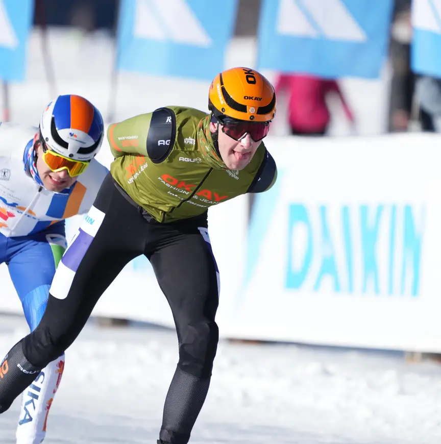 Niet slecht voor de Barre Beuker die nog altijd full-time werkt als teamleider bij Rollecate, een bedrijf dat aluminium en stalen geveldelen produceert. “Door de stap naar Royal A-ware doe ik een stapje terug naar 20 uur in de week en switch ik naar een functie als magazijnmedewerker”, aldus Van der Horst. “Daardoor kan ik gewoon mee op trainingskamp en ben ik zomers vrij om te skeeleren.” Dat laatste blijft belangrijk voor Van der Horst, die hoopt meer mensen in de ploeg enthousiast te krijgen voor de marathons. Samen met kameraad Harink vormt hij een aardig duo. “Jordy trok in Rotterdam voor mij de sprint aan, in Hallum kon ik hem laten rijden. We werkten al een beetje samen, mooi dat we dat nu in hetzelfde pak kunnen doen.”