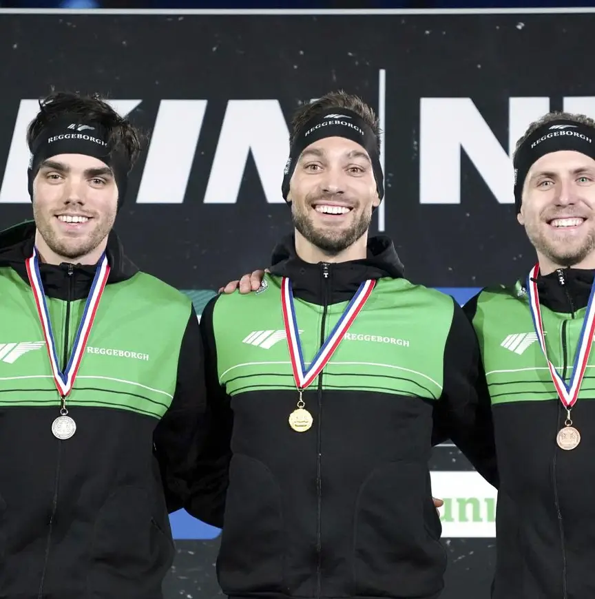 Toch stak Nuis, voor de vierde keer op een afstandskampioenschap de beste op de schaatsmijl, ook over zijn ijsprestatie een onderhoudende speech af. Hij meende dat hij op het rechte eind zo traag ging dat zijn stijl moeiteloos kon worden vergeleken met die van de vroegere stayer Gianni Romme. Die Brabander gebruikte gedurende zijn gouden jaren voor de baandelen tussen de bochten amper zes slagen. “Die Romme-slag was bij mij net te langzaam om m’n topsnelheid te bereiken. Het is mooi, maar je benen lopen dan wel vol en dus moet je het allemaal wat dynamischer houden”, zo doceerde de over-enthousiaste topatleet van Team Reggeborgh. “Ach, ik had vertrouwen dat het goed zou komen. Dan is het zo heerlijk schaatsen, man. Iedereen reed een persoonlijk record, zag ik voor mijn race. Nou, dacht ik, dan zal het vast snel zijn. Man, zo heerlijk, zó ontzettend heerlijk. Vervolgens ook nog met heel Reggeborgh op het podium. Weet je, we zitten in een groen weekend”, zo verwees hij naar de bijna onwerkelijke lijst op het scorebord, met vijf Reggeborgh’ers in de top-5. Zijn kompanen bij de huldiging: Patrick Roest (tweede) en Wesly Dijs (derde).