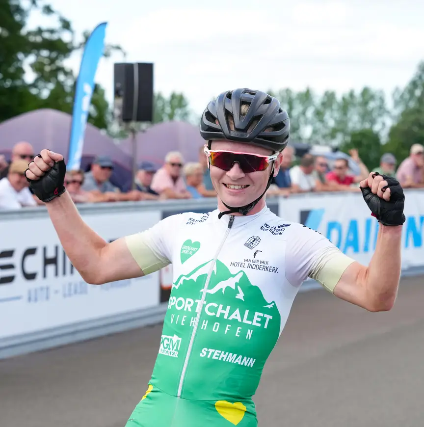 ‘Echt?’ Dat is de reactie van Viehhofens ploegleider Kurt Wubben vanaf zijn vakantieadres, wanneer hij zaterdagmiddag een bijzonder berichtje ontvangt. ‘Tom wordt kampioen puntenkoers!’, luidt de melding die voor ongeloof zorgt bij de Pijnackernaar die straks bij de marathons zijn mannen aanstuurt. Wubben moet het nieuws kennelijk even laten bezinken. Pas een klein half uur later stuurt hij een reactie. ‘Wat een topper, die Tom. Mooi!’