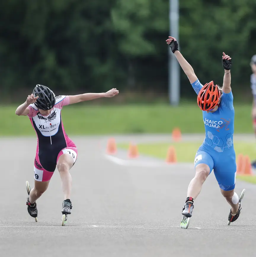 Vandaag lette de Friezin daarom extra goed op ‘normaal skeeleren’, en met succes. In de one lap-finale bleef ze haar grootste concurrente Roosenboom na een snelle start en spectaculaire fotofinish voor. “Dit was mijn eerste spagaatfinish voor het echie”, luidt het enthousiast. “De eerste keer dat ik hem echt nodig had voor de overwinning.”