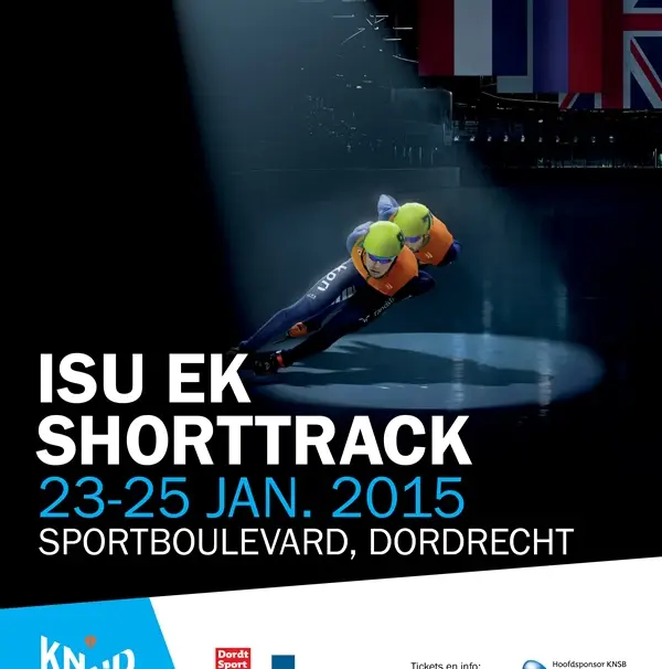 “Hier is ie dan! De poster van het #EKShorttrack 2015 in Dordrecht!”. Om 13.00 uur precies stuurde Knegt een tweet de wereld in met de poster van het EK.