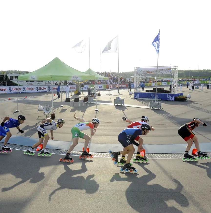 2013? Was dat niet het jaar waarin de Nederlandse inlineskaters van een zeer geslaagde goldrush konden spreken? De mondiaal massaal beoefende spektakelsport, vanaf 2010 een tak van de KNSB, had dat jaar Almere als locatie voor het Europees Kampioenschap waaraan 287 atleten uit negentien landen deelnamen. Dat heeft de internationale skeelergemeenschap geweten. Onder aanvoering van een niet te stuiten Manon Kamminga werd vijftien keer goud behaald, zeven exemplaren kwamen terecht bij haar, te weten op de 200 meter, 1000 meter, aflossing, aflossing gemengd, afvalkoers (alle baan), en de aflossing en afvalkoers op de weg.
