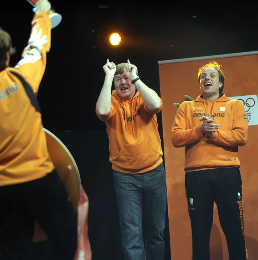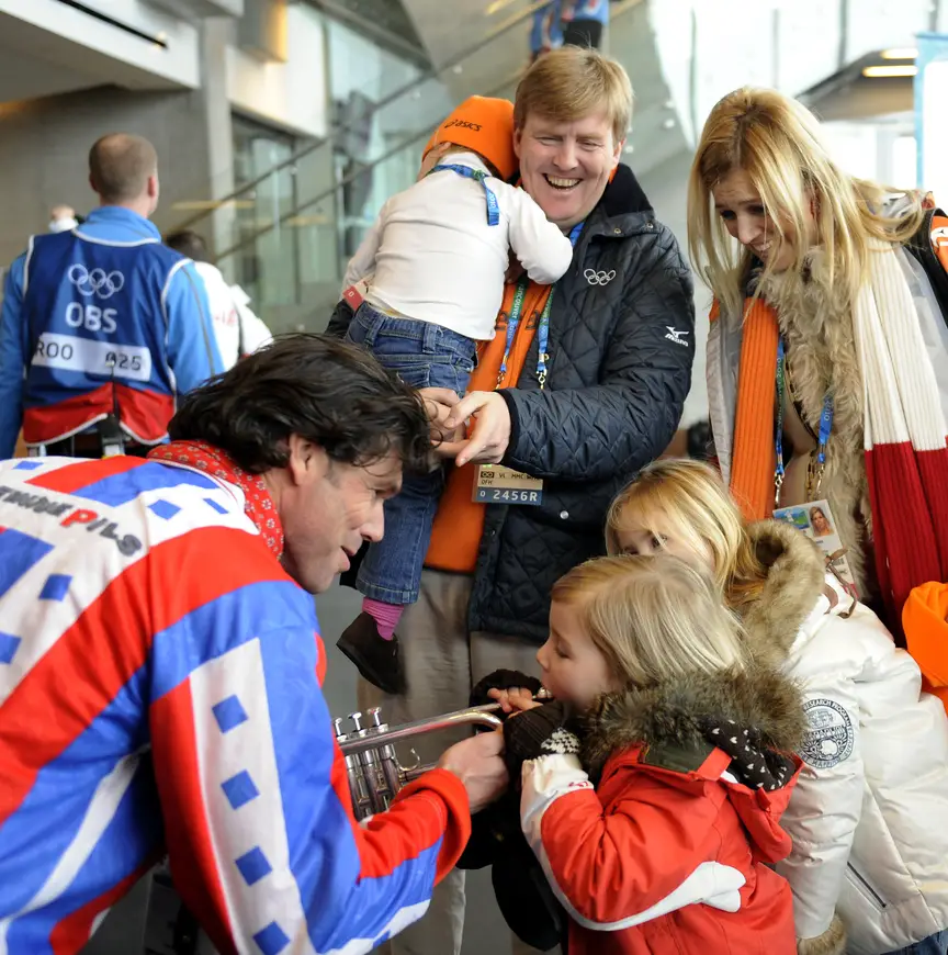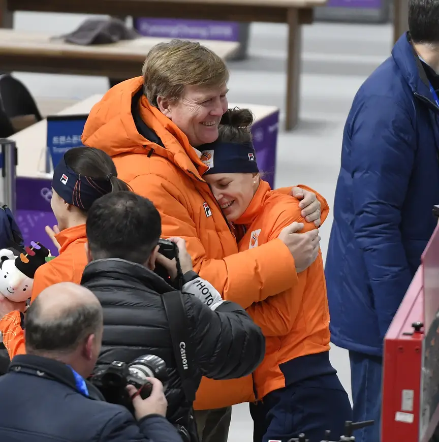 Langs het ijs is de koning eigenlijk net zo fanatiek als wanneer hij zelf op de ijzers staat. Zo hebben we hem tijdens Olympische Spelen de longen uit het lijf zien aanmoedigen en uitbundig zien feesten na de zoveelste Nederlandse overwinning.