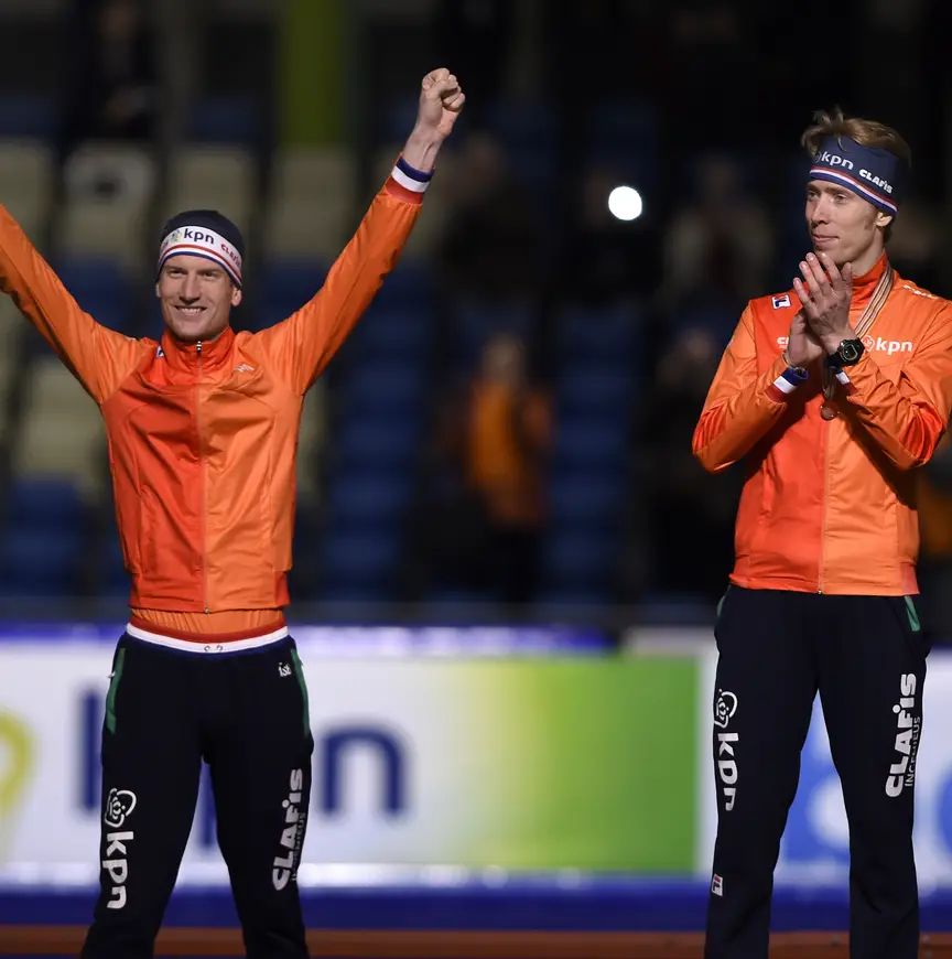 Bergsma reed met 12.54,82 naar het goud, maar Kooiman mocht het zilver op komen halen. Dus stonden de pupillen van Jillert Anema samen op de hoogste treden. “Dat is toch wel extra mooi”, zegt Kooiman. “Vanaf augustus twee keer per dag trainen zonder rustdag, dat zijn de schema's van Anema”, vervolgt hij. ”We trainen vier keer per dag, ook vorige week in Inzell nog en dan denk je eerst poeh, wat veel, maar dan voel je ook wel wat het doet.”