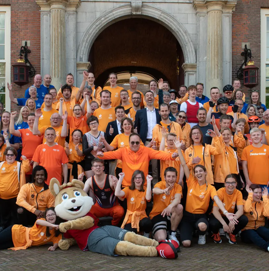Inez Dioncre, Sterre Preuter, Ewald van Bussel en Djim Pieters zijn de vier inlineskaters die volgende maand namens TeamNL deelnemen aan de Special Olympics in Berlijn (17 – 25 juni). Zaterdag presenteerden de atleten van TeamNL zich aan het publiek. Dat deden ze op het Kasteelplein in Breda, waar ze werden toegesproken door Breda’s burgemeester Paul Depla en de Tilburgse sportwethouder Maarten van Asten. Deze twee Brabantse steden zijn volgend jaar gastheer van de Nederlandse editie van Special Olympics. Daarna was het tijd voor een korte kledingshow, waarbij Djim Pieters de inlineskaters vertegenwoordigde, en een gezamenlijke kampioenendans. Voordat de inlineskaters naar Berlijn afreizen, staat voor hen eerst nog het NK Inlineskaten voor G-sporters op het programma. Dat vindt op 27 mei plaats in Rijssen.