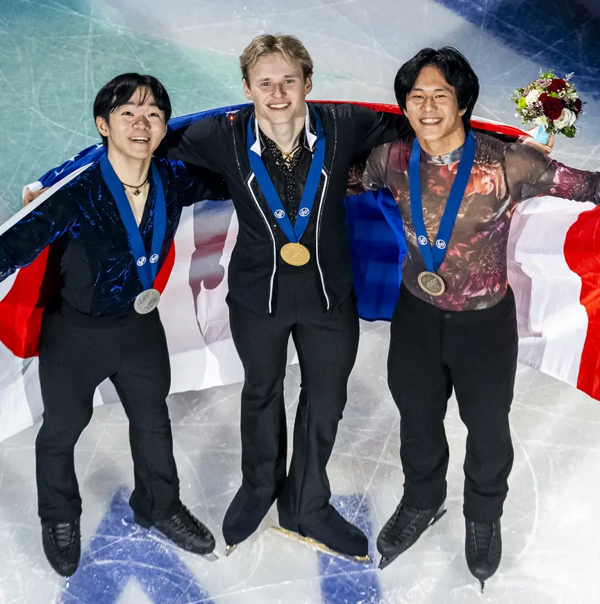 “Dit betekent zoveel voor me. De voorbije weken waren een mentale en fysieke uitdaging voor me. Ik heb me zelfs even afgevraagd of ik er goed aan deed wel naar Montréal af te reizen. Het is een last minute-beslissing geweest het toch te doen, omdat ik wel nieuwsgierig was waartoe ik in staat zou zijn. Het zou de beste prestatie van mijn leven kunnen worden, of het zou faliekant mis kunnen gaan.” Het werd dat eerste. De Japanner Yuma Kagiyama won voor de derde keer zilver (309.65 punten). De voor Frankrijk uitkomende Adam Siao Him Fa deed ook iets ‘onmogelijks’: hij stond na het korte programma als negentiende gerangschikt, maar zijn knappe tweede rit van het toernooi leverde zo’n hoge score op dat hij bij het opmaken van de balans de winnaar van het brons bleek te zijn (284.39 punten).