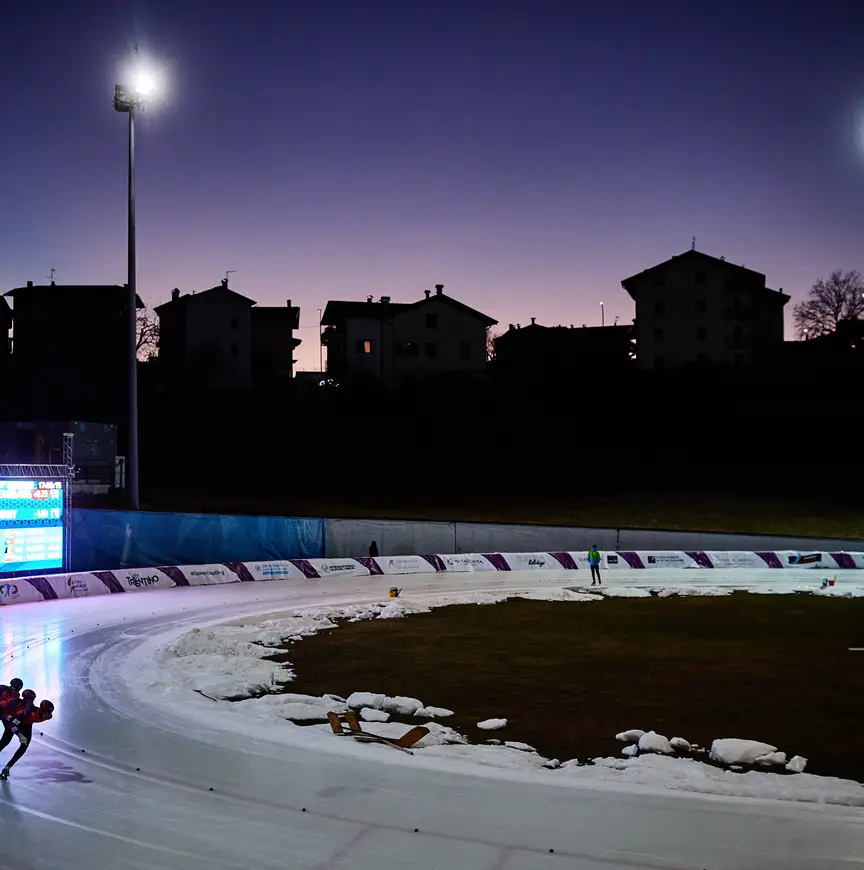 Op de buitenbaan in Italië waren de omstandigheden niet gemakkelijk. “De Italianen kregen in de week voor de wedstrijd nieuwe Zamboni’s waar de ijsmeesters mee moesten leren omgaan. De wind en het harde ijs hadden invloed, met name de vrouwen hadden moeite grip te vinden en druk te houden. Dat maakte het lastig.”