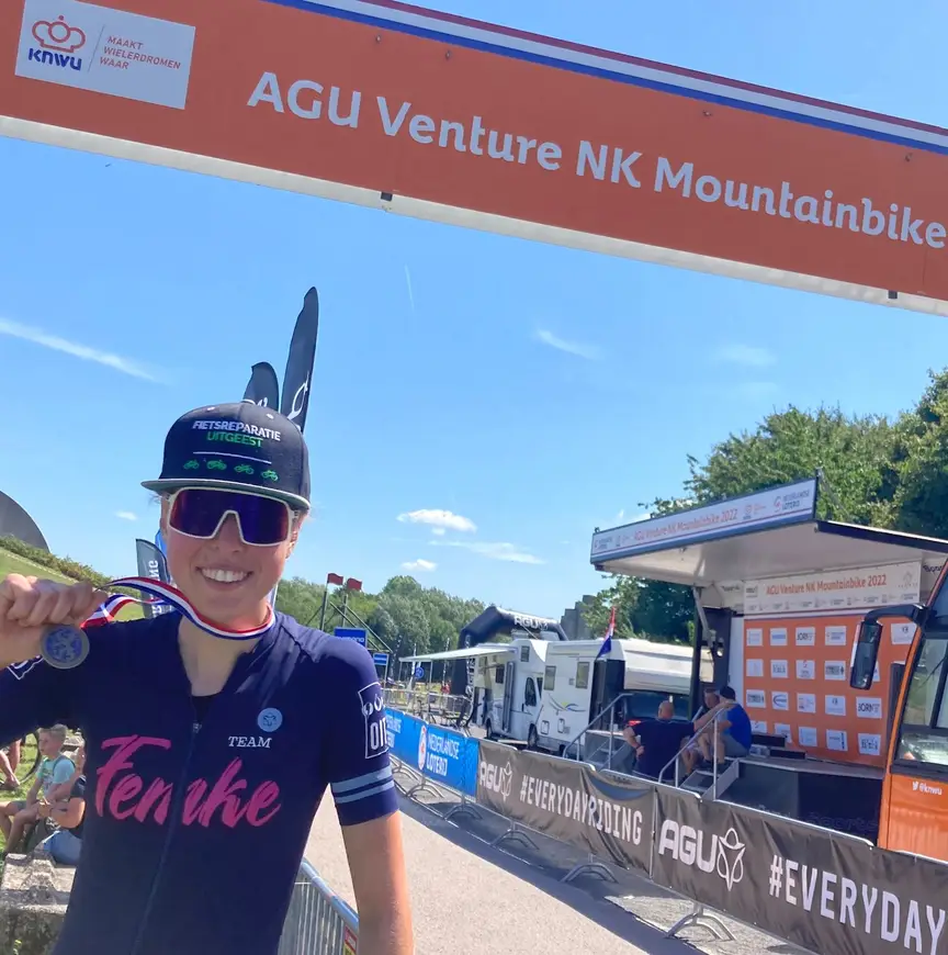 Tegen de ware specialistes Fem van Empel en Puck Pieterse kon ze het niet bolwerken, maar de derde plaats en daarmee de behaalde bronzen plak op het NK mountainbike bij de beloften in Spaarnwoude stemde marathonschaatsster Femke Mossinkoff meer dan tevreden. "Best een verrassing. Ik had niet verwacht in dit deelnemersveld zo ver te komen, want er stonden veel goede rensters aan het vertrek", reageert de 21-jarige rijdster die in de winter op het ijs uitkomt voor Van Ramshorst Renault.
