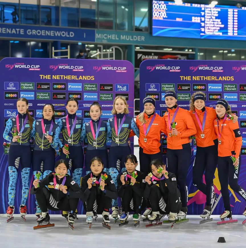 Op de tweede dag van de ISU Junioren World Cup Shorttrack in Heerenveen hebben de Nederlandse rijders twee medailles gewonnen. Voor Jonas de Jong, Leon Visser, Bibi Arts en Mijntje de Jong was er zilver op de mixed relay. In de finale kwamen ze nipt tekort tegen Zuid-Korea. Arts en De Jong mochten later nog een keer het podium op klimmen, want met Kiek Straathof en Zoë Deltrap werd brons behaald op de relay voor vrouwen. Voor Deltrap was het de tweede medaille van het weekend, eerder had de shorttrackster van TeamNL al brons gewonnen op de 1500 meter. Veel rust is de shorttrackers niet gegund, want vanaf donderdag verschijnen ze in het Poolse Gdansk aan de start van het WK Junioren.