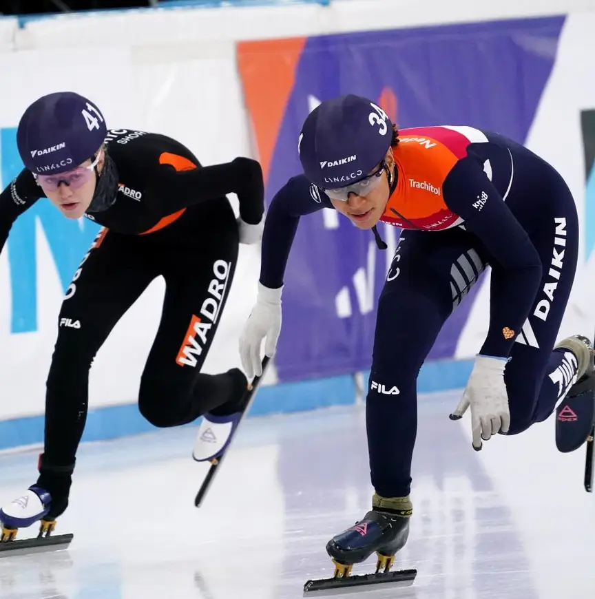 Met een kort berichtje op Instagram heeft shorttrackster Georgie Dalrymple (op de foto rechts) aangekondigd te stoppen met haar tosportcarrière. 'Na heel veel mooie jaren tot het besluit gekomen te stoppen met schaatsen. Op naar nieuwe avonturen', meldt ze op social media. De 20-jarige atlete was op de Winterspelen van Beijing present als reserve. Als juniore won ze brons op de 500 meter tijdens de WK van 2019 in Montréal. Een jaar later maakte ze deel uit van het Oranje-kwartet bij de vrouwen dat goud bemachtigde op de relay. In 2017 was ze goed voor een zilveren plak (500 meter), in het kader van het Jeugd Olympisch Festival in Erzurum (Tur).