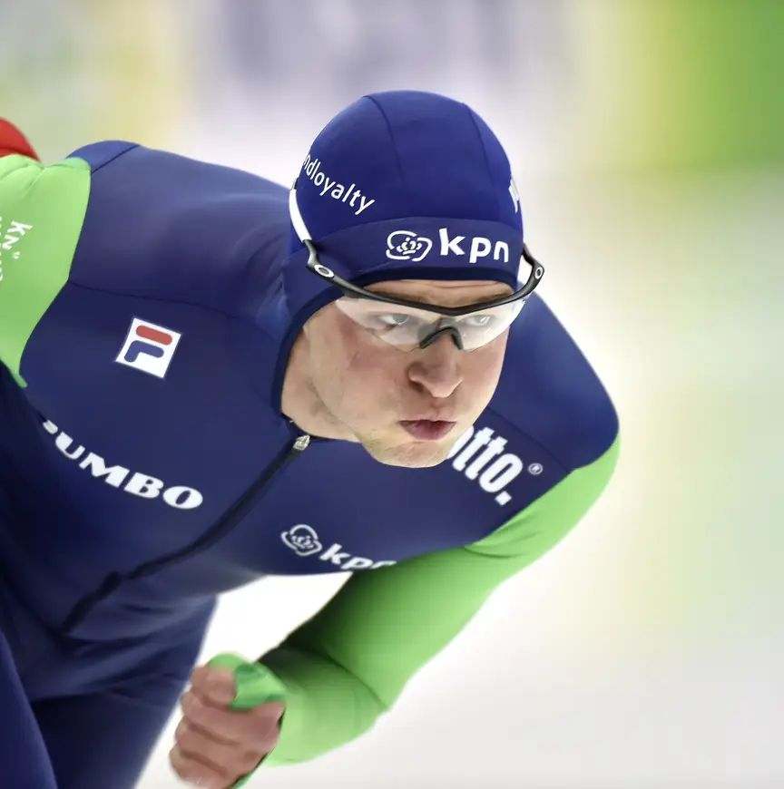 Op de tien kilometer heeft Kramer een voorsprong van ruim vijf seconden op Pedersen. Blokhuijsen volgt op ruim negen seconden.