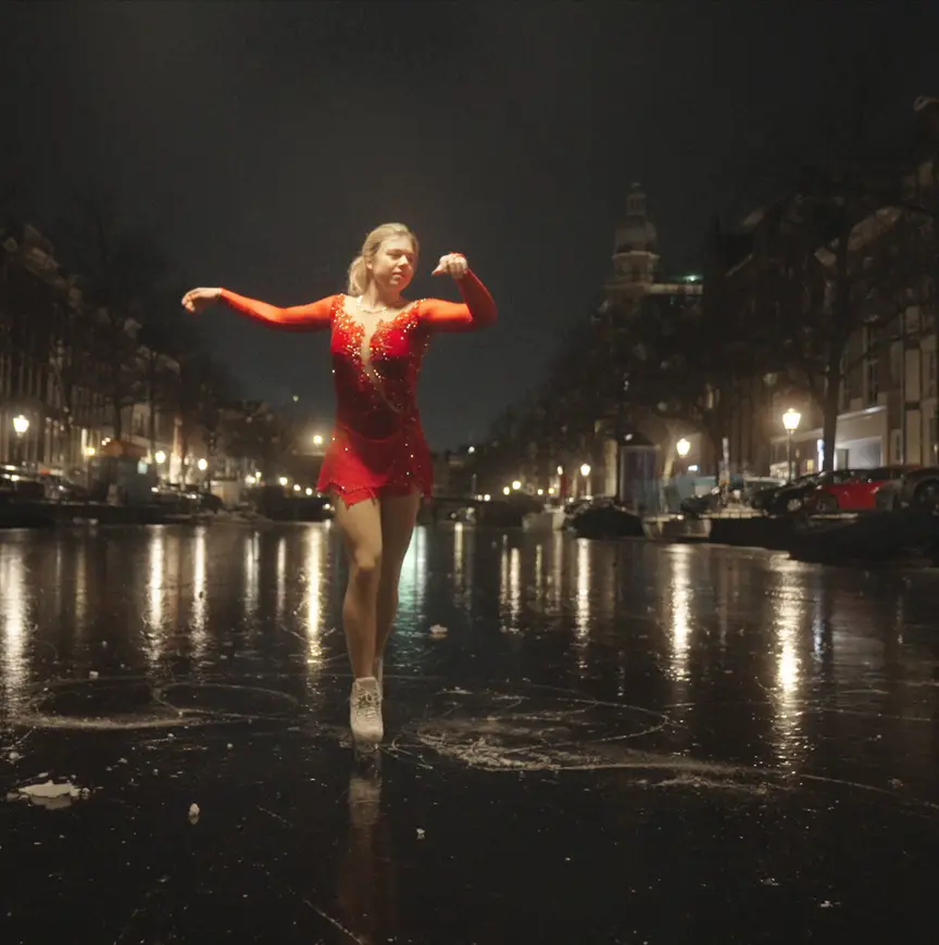 De 28-jarige Jaap Mar Diemel is dit jaar afgestudeerd aan de Nederlandse Filmacademie in Amsterdam. Bij het horen van de eerste berichten dat het zeer koud zou worden, schoten zijn gedachten al gauw in projectstand. "Zeker in deze gekke tijd, de wereld staat een beetje stil, heb ik nog relatief weinig werk en zodoende veel tijd over", vertelt de filmmaker. "Ik lag 's avonds in bed en dacht: als de Amsterdamse grachten bevriezen, is dat een unieke kans om iets te maken. Kunstschaatsen was het eerste wat in mij opkwam. Het idee van die sierlijke bewegingen in de nacht op de grachten liet mij niet meer los. Het is echt een passieproject."
