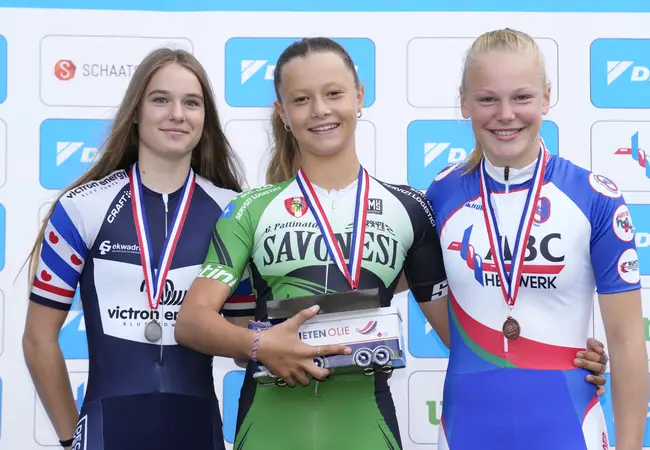 Ze bleef Huls toch vrij ruim voor en pakte daarmee voor het eerst drie Nederlandse titels in een en hetzelfde seizoen. In Rotterdam wist ze namelijk op de weg al kampioen te worden op de 100 meter en de one lap. Op de 200 meter van zaterdag veroverde Lataesha Narain het brons. Het talent van KTT Noordwest werd tevens Nederlands kampioen bij de junioren A.