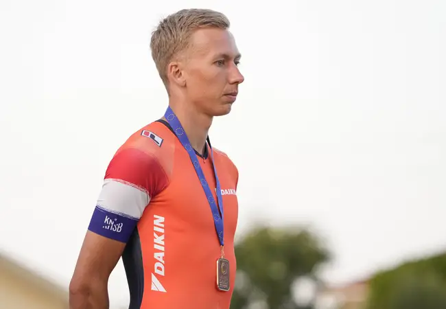 "Na het EK in Pamplona had ik mezelf als doel gesteld dat ik het podium bij het EK wilde halen. Ik had ook echt het idee dat ik ten opzichte van de vorige jaren een stap had gemaakt, maar toen ik hier, niet helemaal topfit, kwam, merkte ik dat mijn niveau niet was wat ik had gehoopt en verwacht." De meervoudig Nederlands kampioen dacht even terug aan de afgelopen maanden, waarin hij voornamelijk in zijn eentje trainde. "Ik heb geen zin om nóg een jaar helemaal alleen te trainen en vervolgens tiende of vijftiende te worden. Daar doe je het niet voor. Ik ben heel blij dat het er vandaag is uit gekomen en dat het vertrouwen weer een beetje hersteld is. Ik heb mezelf nog niet afgeschreven."