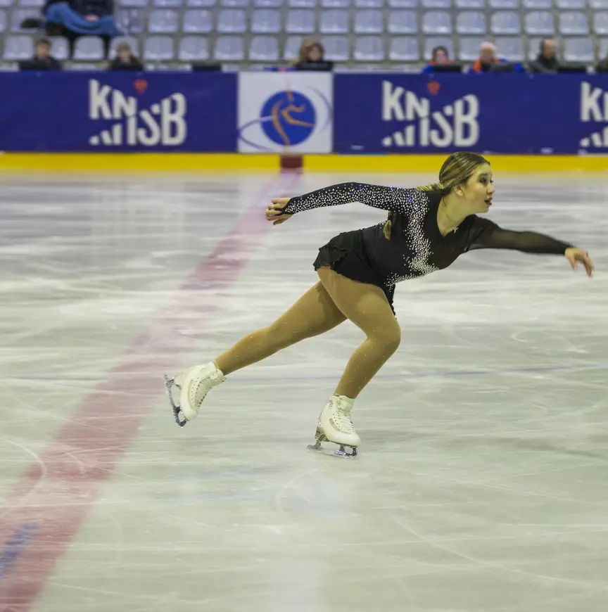 Ook Lena Slagter (HIJH) was niet helemaal tevreden. “Het ging niet zo goed. De eerste sprong ging nog wel, maar bij het aanrijden van de dubbele axel wist ik al dat ik ging vallen. Mijn passenserie ging wel goed, maar mijn drie-combinatie niet. Mijn arm was te ver naar achter. Toen wilde ik ‘m achter de flip doen, maar dat ging niet. Het was ook wel een beetje lastig want vier dagen voor de wedstrijd had ik pas deze schaatsen, omdat mijn oude schaatsen vorige week helemaal waren gescheurd. Ik had er daardoor ook niet heel veel van verwacht.” Slagter kreeg voor haar vrije kür 48.07 punten en bracht haar totaal over twee dagen op 76.45. Daarmee werd ze 15e.