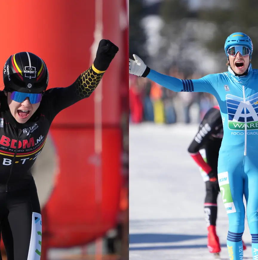 Marco van der Tuin (A6.nl / KMC) & Kevin van der Horst (OKAY / Interfarms), twee erkende natuurijsmannen, zijn ervan tussen en hebben aan de streep 12 seconden voorsprong op, wat het lijkt, een groep hongerige leeuwen.