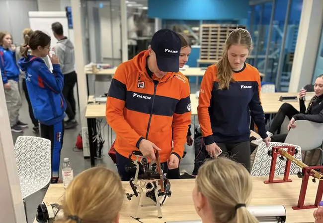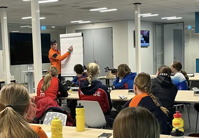 "Gedurende de drie trainingsdagen zijn de rijders met hetzelfde niveau vanuit verschillende landen samengevoegd. Ieder groepje wordt begeleid door een andere coach, die elkaar vervolgens ook weer helpen en stimuleren. Zo proberen we zowel voor de schaatsers als voor de trainers een lerende omgeving te creëren. Met als doel er gezamenlijk beter van te worden."