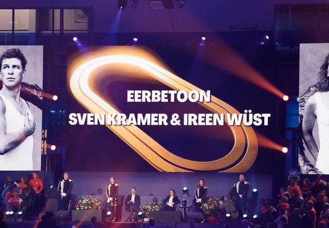 Een explosie van licht en geluid, aangevuld met het applaus, geschreeuw en gejuich was het resultaat. Net zo was de waterval van lovende woorden en eretekens. "Als je alleen met een voornaam door het leven kunt, ben je heel groot", zei premier Mark Rutte in een videotoespraak. IOC-voorzitter Thomas Bach noemde beiden ware legenden. Directeur-bestuurder Herman de Haan van schaatsbond KNSB kende hen de oeuvreprijs toe en benoemde Kramer en Wüst tot ereleden. Verder werden de fonkelnieuwe namen voor de bochten in Thialf onthuld: de Sven Kramer-bocht voor de Zuid-bocht en de Ireen Wüst-bocht voor de Noord-bocht.