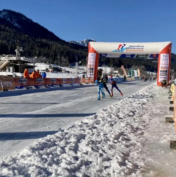 Ondertussen even terug naar de vorige koers op de Weissensee. Op maandag werd de Aart Koopmans Memorial verreden, waar Esther Kiel van BDM-BDZ als eerste over de streep kwam. “Prachtig, super, ja, ik ben er heel erg blij mee", het is een standaardzinnetje dat Esther Kiel deze winter gedachteloos en inmiddels erg vaak opratelt. Na vier marathons op kunstijs pakte ze maandag haar eerste zege op de Spielplatz der Natur, het welbekende decor van de natuurijswedstrijden op de Weissensee.” Hier is haar volledige reactie terug te lezen.