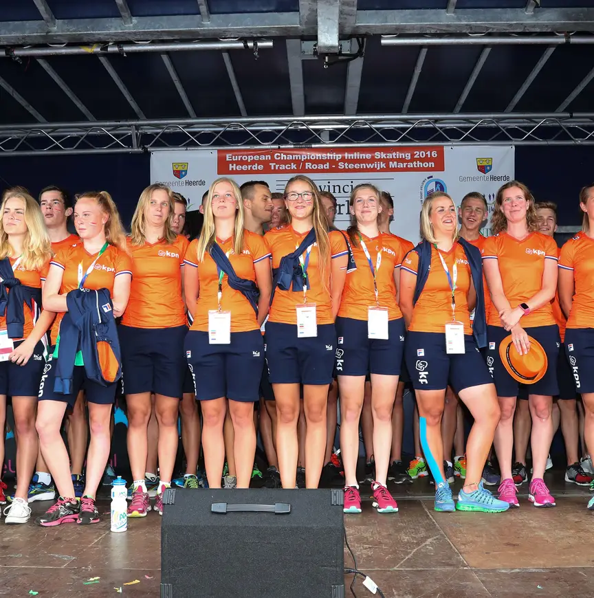 8.10u: De wedstrijden bij de EK inline-skaten beginnen dan wel vandaag, gisteren vond de opening van het toernooi al plaats in het centrum van Heerde. Dat leverde een mooi plaatje van de Nederlandse ploeg op.