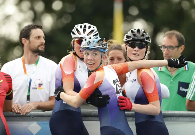 18.30u: Bij de junioren A helaas geen medailles voor de Nederlandse rijders. Gerrie van Lingen krijgt een DQ. Elisa Dul moest het doen met plaats vijf.