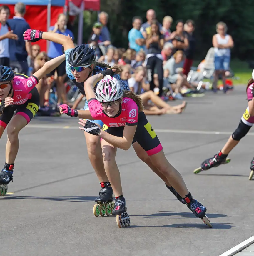 14.10: De jongste inlineskaters, de kadetten, maken zich klaar voor de start.