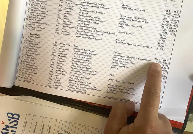 17.15: Voorzitter van SSV Rijssen en speaker Mark van den Dijk heeft een leuk nieuwtje voor Glenn Nijenhuis met zijn snelle tijd op de 200 meter Dual tijdrit (18.16). Van den Dijk heeft de archieven erbij gepakt en laat zien dat het oude Nederlands record (18.20) dateert van 19 juni 2021, gereden door Jenning de Boo tijdens het EK in Canelas.