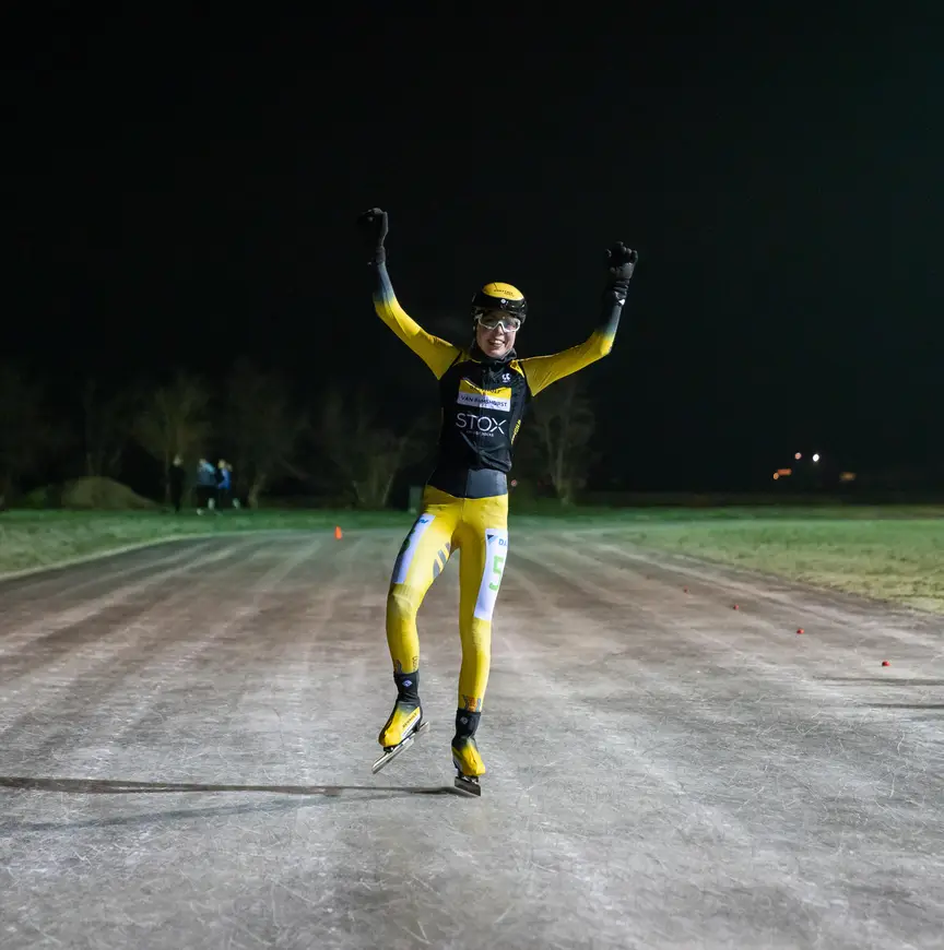 Toen Femke Mossinkoff vanochtend opstond, dacht ze niet aan het rijden van een werelduurrecord. Nog geen twaalf uur later ging haar 32 kilometer, 172 meter en 76 centimeter op het ijs van Ammerstol de boeken in als het eerste werelduurrecord op natuurijs bij de vrouwen. In dit artikel lees je meer over het Werelduurrecord op natuurijs van Femke.