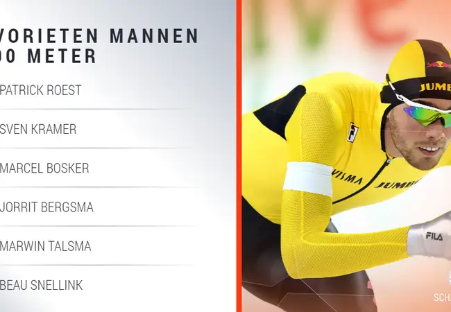 De dag wordt afgesloten met de 5000 meter voor mannen. In een oefensessie lieten Patrick Roest en Sven Kramer zien dat ze in vorm zijn door onder het baanrecord te duiken. Die tijden zijn echter officieus. Op de vijf kilometer staan in rit acht teamgenoten Marcel Bosker en Roest, Nederlands kampioen op deze afstand, tegenover elkaar. In de volgende rit neemt Kramer het op tegen Marwin Talsma. De tiende en laatste rit is een strijd tussen Jan Blokhuijsen en Jorrit Bergsma.