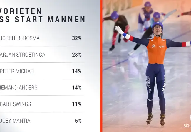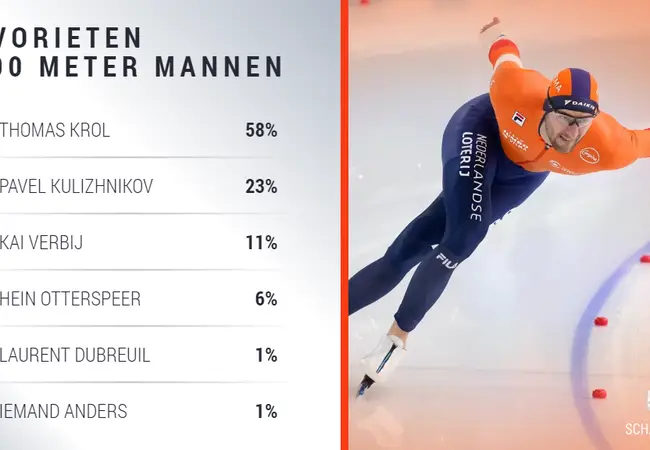 Ook bij de mannen zit de spanning op het eind. Kersvers wereldkampioen Laurent Dubreuil start in rit tien tegen Kai Verbij. Daarna komen titelfavoriet Thomas Krol en de dit seizoen goed rijdende Joel Dufter in actie. De afstand wordt afgesloten door Pavel Kulizhnikov en Wesly Dijs, die zijn debuut maakt op de WK Afstanden.