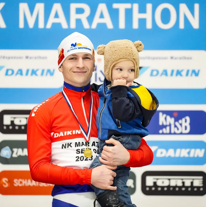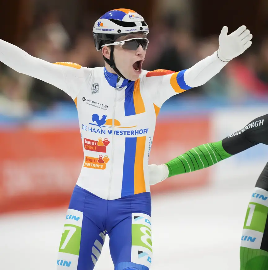 De dertigjarige Ter Haar won nog nooit een wedstrijd bij de A’s. Tot maandag. “Dit is de mooiste wedstrijd die je kunt winnen, het NK is fantastisch. Deze trui (Ter Haar wijst naar zijn borst) mag ik het komende jaar dragen. Elke eerste overwinning is mooi, alleen is het nu gelijk de mooiste.” Qua overwinningen was het de afgelopen jaren geen vetpot voor de ploeg van Piet Hijlkema. Ronald Kruijer boekte bijna twee jaar geleden een overwinning in Zweden, maar: “Verder stonden we droog. Het was al heel lang een groot doel om op kunstijs te winnen, vorig jaar lukte dat niet... Als ploeg hebben we goed werk verzet, we zijn sterk en hebben veel trainingsarbeid geleverd.”