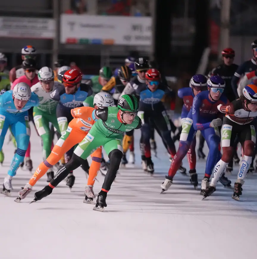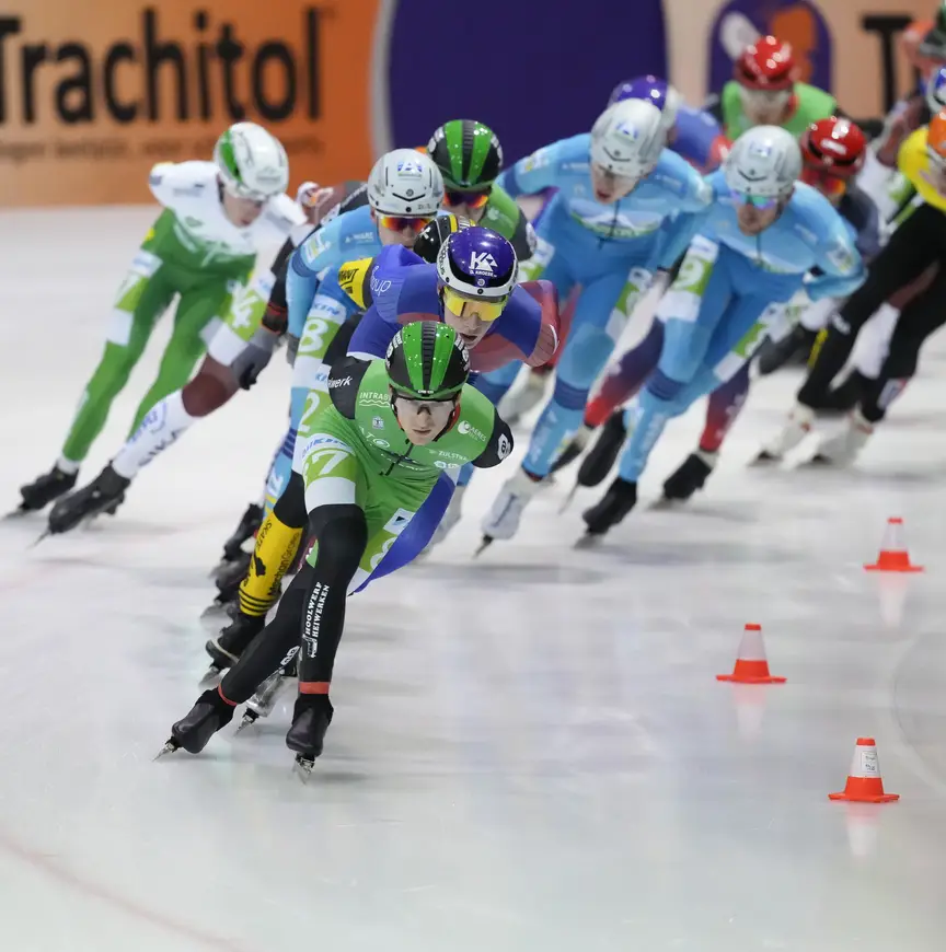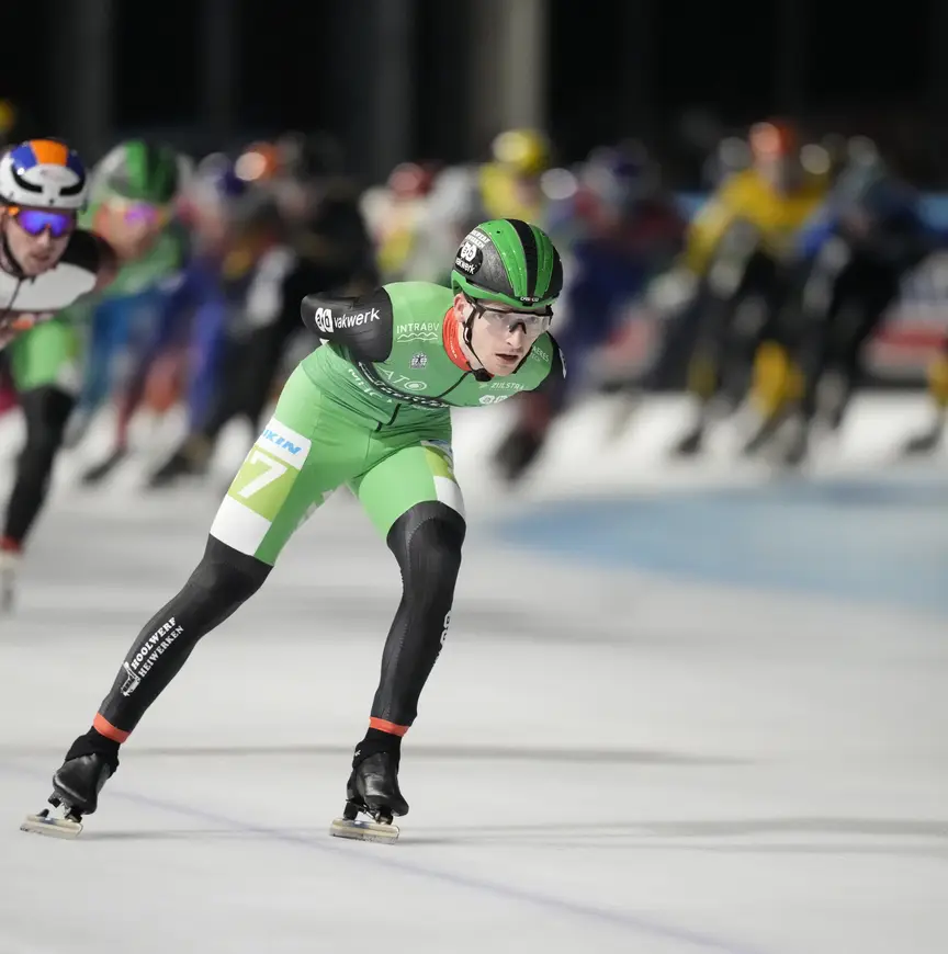 Wat hem parten speelde was een vervelende knieblessure, opgelopen in de tweede training van het seizoen, waardoor hij nauwelijks de gelegenheid kreeg in zijn ritme te komen. Wat dat betreft is topsport keihard. “De fysio en ik zijn er vrijwel direct mee bezig gegaan en ik was best wel blij dat ik relatief snel weer op het ijs kon staan. Maar ik merkte wel dat ik belemmerd werd in mijn beweging. In de wedstrijd was dat bij ongecontroleerde versnellingen en versnellingen op het rechte stuk. Ik moest daar dan weer een paar dagen van herstellen, omdat de knie daarop reageerde. Op een gegeven moment ga je dan ook kwalitatief minder goed trainen en kun je minder trainingsarbeid aan. Stukje bij beetje ging dat wel beter, maar dat had wel wat langer nodig."