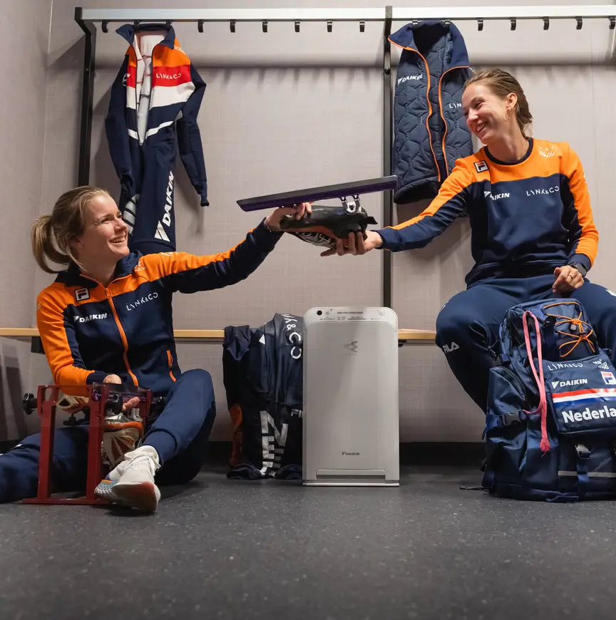 Het van oorsprong Japanse bedrijf is sinds 2018 hoofdsponsor van de KNSB en dus ook van het nationale shorttrackteam. Dan is het een kleine stap om luchtreinigers en sensoren te benutten. De meeste rijders hebben thuis al een luchtreiniger of airco van Daikin en in de eigen kleedkamer in Thialf staan luchtreinigers.