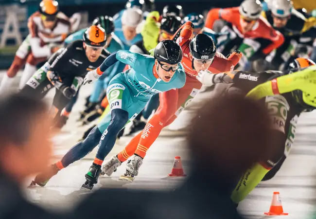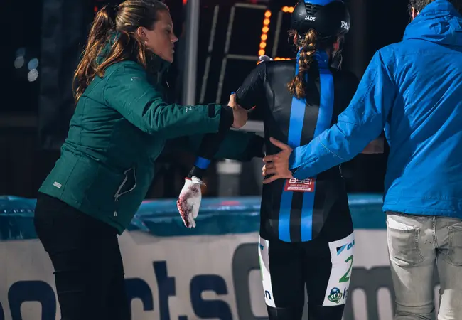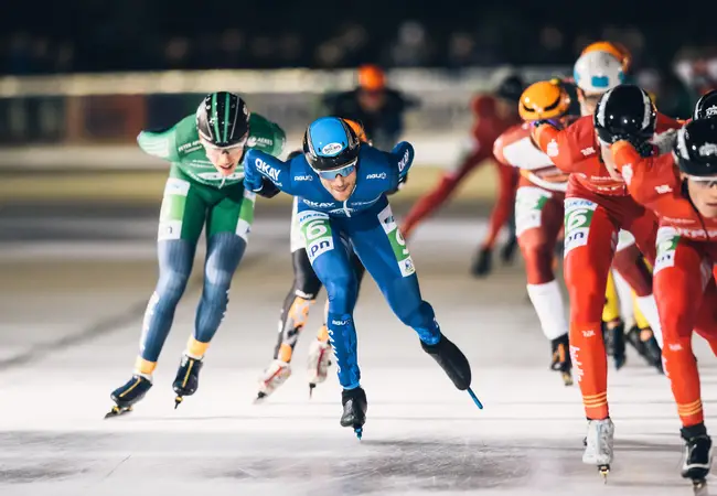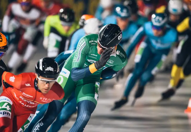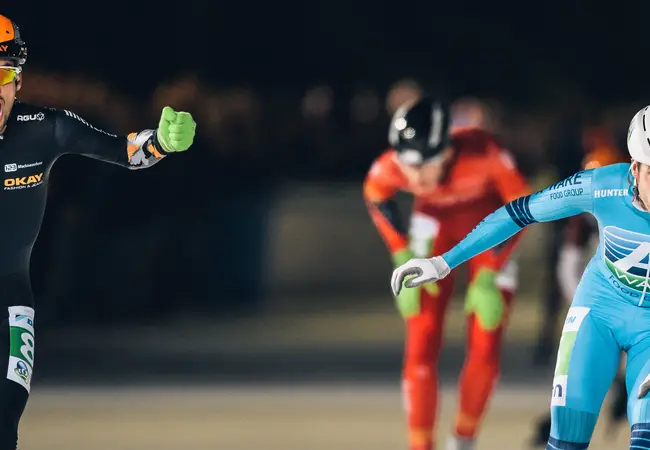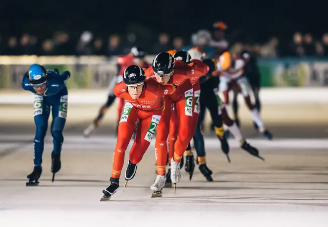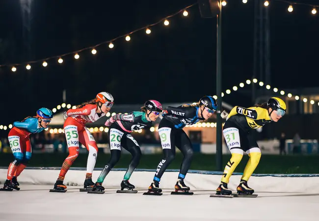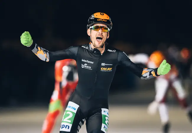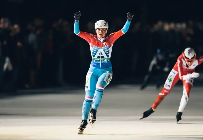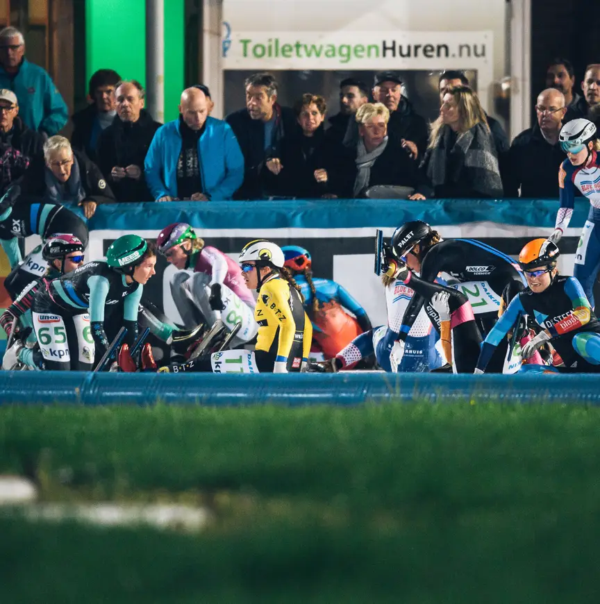 Even maar, want dan springen de eerste gevallen rijdsters weer overeind, snel gevolgd door de rest. Een enkeling blijft liggen, de race wordt stilgelegd. Als de sportieve strijd weer wordt opgevat blijven drie dames aan de kant achter, gekwetst, gewond. 12 ronden verder beslecht Irene Schouten met overmacht het treffen en verlaat het strijdperk als overwinnaar.