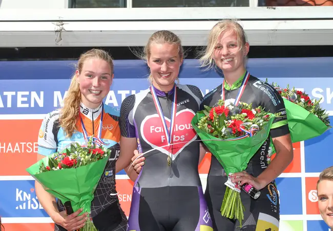 Fleur Veen toonde zich bij de dames oppermachtig en reed solo naar het goud. Maya de Jong kwam als tweede over de meet, terwijl Marijke Groenewoud haar naam terugvond op plek drie.