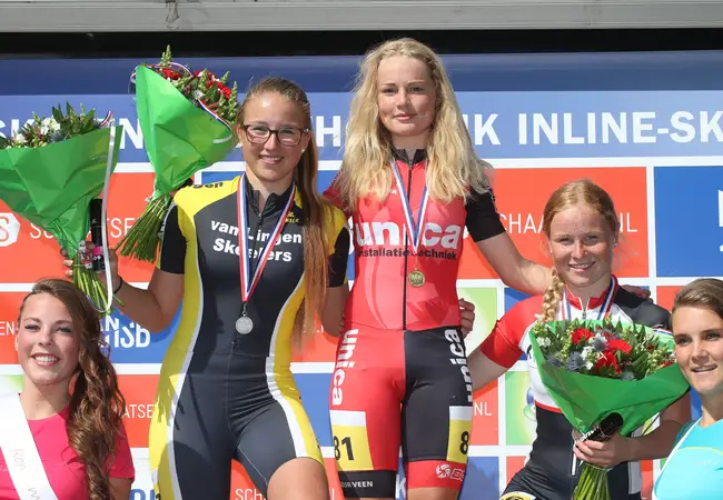 Bij de dames ging de Nederlandse titel naar Berber Vonk. Danielle Ootes – die onlangs bij het NK Baan nog vier keer goud pakte – kwam als tweede over de streep gevolgd door Gerline Crediet.