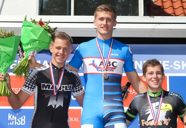 De zeventienjarige rijder toonde zich in Achterveld in een sprint-à-deux te snel voor Jan Korenberg, die zodoende genoegen moest nemen met het zilver. Casper de Gier ging op gepaste afstand met het brons aan de haal.