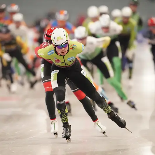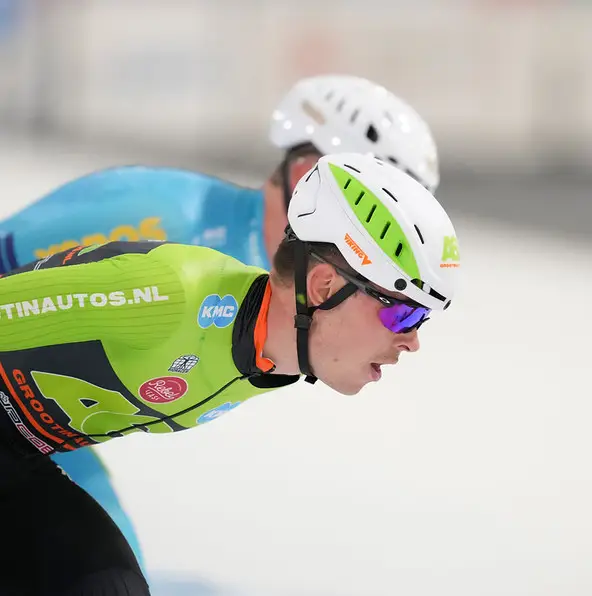 “Ik was net achter hem ingeschoven, Peter Michael kwam van kop en ging ertussen, waarna Jurrian hem duwde. Hijzelf verloor daardoor wat snelheid terwijl we overstapten in de bocht. We waaierden wat naar buiten, ik raakte zijn schaatsen, en hetzelfde moment ging ik onderuit. Er was geen tijd meer mijn lichaam zo te positioneren dat ik in een veiligere houding naar de kussens toe gleed. Ik vloog er met een gestrekt been tegenaan, zag direct een bult op dat been en wist: die is gebroken.” Wat hij niet kon weten, was dat zowel scheen- als kuitbeen in puin lag.