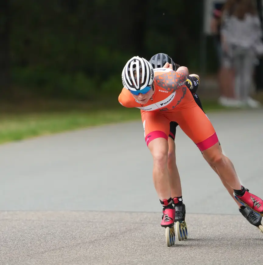 Nou, gewoon weer schaatsen, hahaha! We hebben deze zomer veel op de wegen rondom de Veenhoop geskeelerd, regelmatig ritten van zeventig, tachtig kilometer. Op een gegeven moment heb je die skeelers wel genoeg aan je voeten gehad. Alleen al vanwege de blaren…”