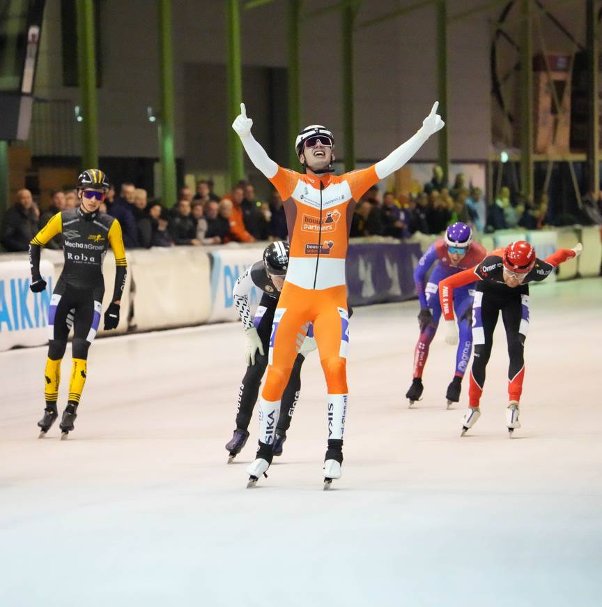 Mulder, 23 jaar, heeft nog nauwelijks geschiedenis op de schaats. Zijn oorsprong ligt in het inlineskaten. Twee jaar geleden maakte hij zijn debuut op de marathon. Dat hij nu al zo goed zou zijn, had hij dan ook niet verwacht. "Bij Bouwselect train ik met de A-ploeg mee en is het niveau zo hoog. In Amsterdam ging het al lekker, maar vandaag voelde ik me zo goed. Dat had ik nooit verwacht, al wist ik diep van binnen wel dat het erin zat."