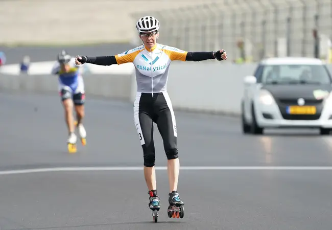 "Ik heb twee jaar lang niet geskeelerd vanwege een versleten knie, maar dit wilde ik toch graag meemaken", zegt Teuling terwijl ze over het circuit uitkijkt. "Bij mij in de buurt heb ik een mooi stukje glad asfalt gevonden om op te trainen en dat ging aardig. Daarom durfde ik dit kampioenschap wel aan", glimlacht de winnares. "Ik moet hier wel een weekje van bijkomen. Maar solo over de finish komen, voelt heel lekker en zo doe ik het liefste."