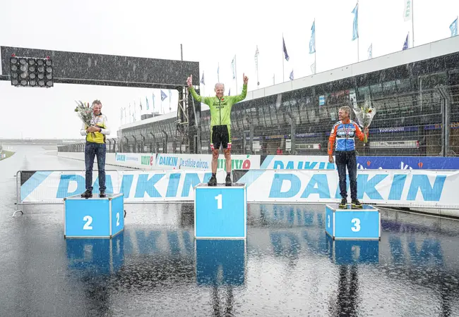 Hans van Apeldoorn was de snelste uit een kopgroep van vijf in de categorie masters 50+. Hij versloeg Wim Kwakkel en Henri van Ramshorst op de meet. Na drie jaar op rij de titel bij de masters 60+ te hebben veroverd moest Albert Bakker op het circuit van Zandvoort genoegen nemen met zilver. De overwinning ging naar Henk Lankhof. Jan Heuver werd derde.