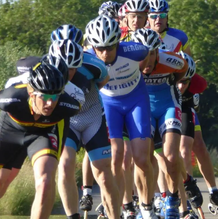 Albert Bakker, wedstrijdskater sinds 1985, heeft zelfs zes nationale marathontitels bij de masters op zijn naam. De aanvaller uit het Groningse Scharmer, die ook al eens Europees kampioen was, leek in een kansrijke ontsnapping te zitten met Nick Bravenboer. “Maar we kregen niet meer dan vijftien seconden. Toen werd het een kwestie van het tempo hoog houden en gokken op de sprint. De vijftigplussers legden de afstand af in 1.16,51.
