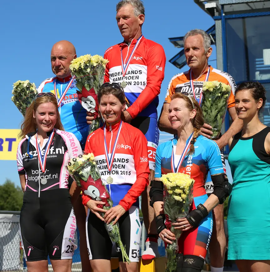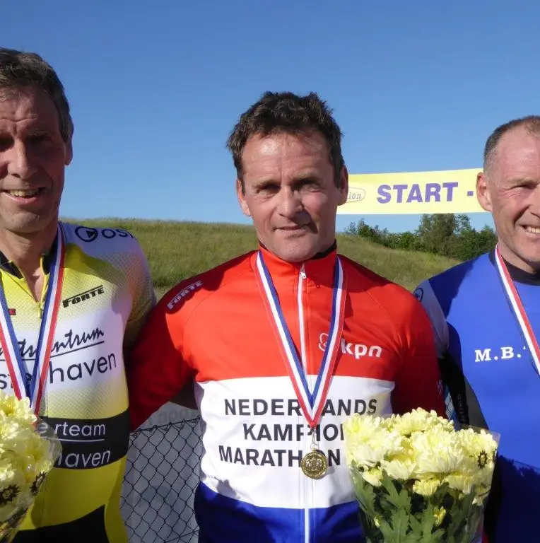 Van Apeldoorn, die twee jaar op rij kampioen was, toonde zich tevreden met de tweede plek. “Door een rugblessure heb ik zes weken niet kunnen trainen. Van de therapeut moest ik veel zwemmen. Wegrijden lukte niet. In de afdaling kwam iedereen weer bij. Ik ben allang blij dat ik op het podium sta.”