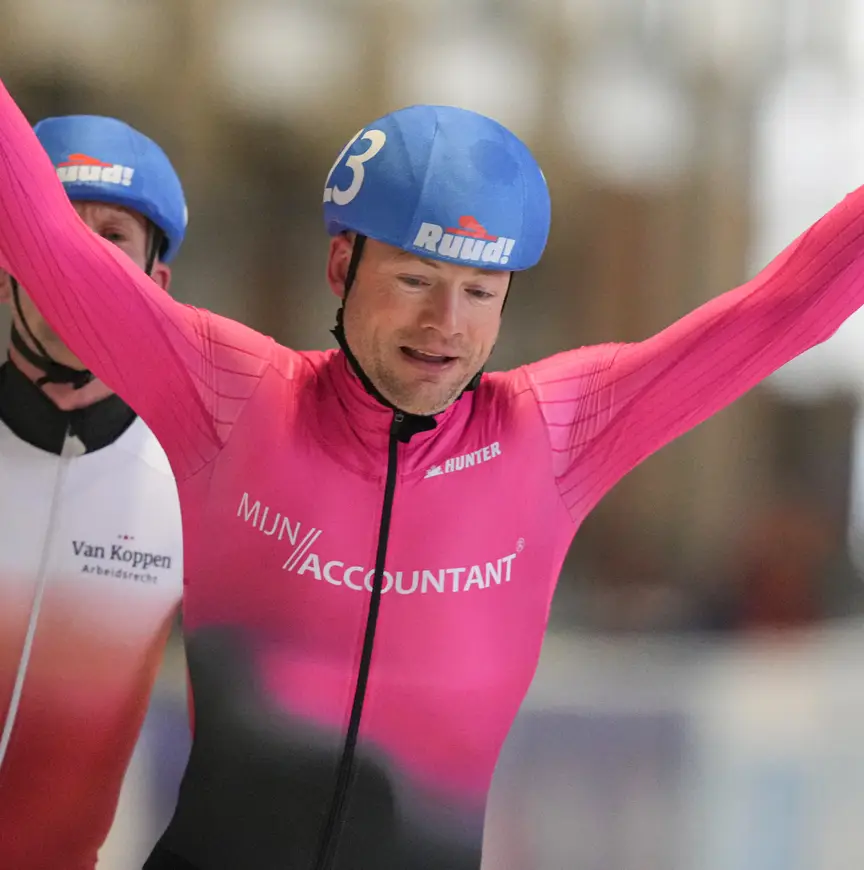 Dat lukte hem door handig te profiteren van de consternatie die in de finale van de wedstrijd ontstond toen de jury met een nog een ronde te schaatsen aankondigde dat alle rijders tegelijk moesten afsprinten. “Daar kon ik mooi van profiteren. De verwarring was groot, en ik sprintte nog aardig. We sneu voor Kurt die de hele race ongeveer alleen vooruit had gezeten en nu verborgen in een gedubbeld peloton over de streep kwam. Hij had wel een wat leukere finish verdiend.”