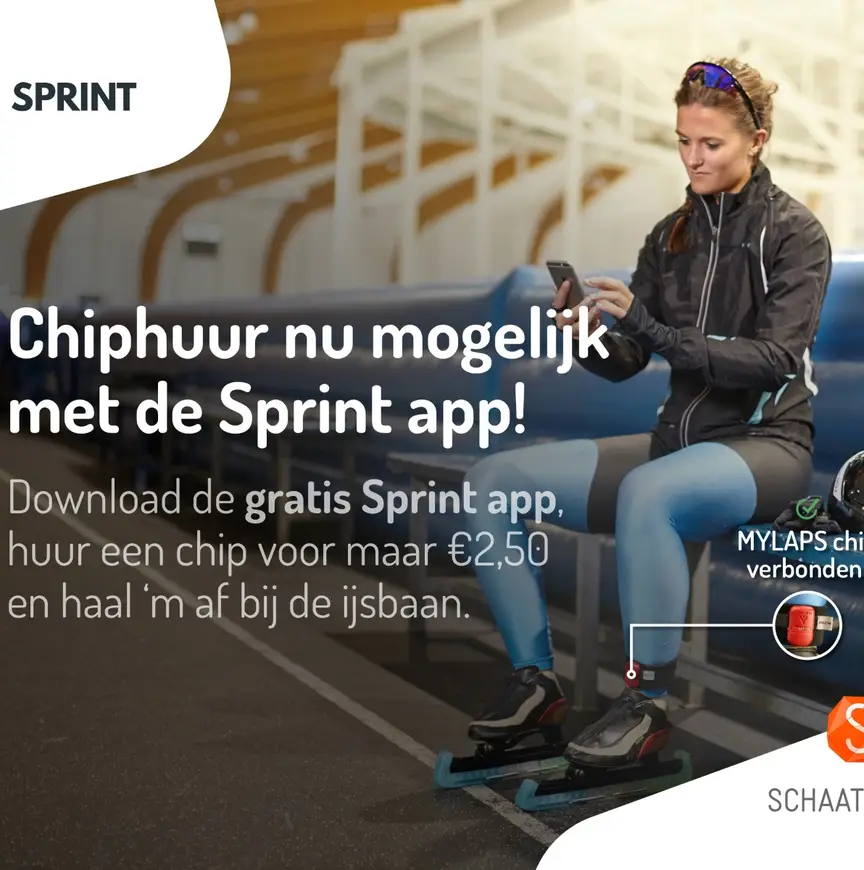 Het huren van een chip kan voor maar € 2,50 per dagdeel in de Sprint app. Met dank aan deze nieuwe huurmogelijkheid, willen we nog meer schaatsers een geweldige schaatsdag bezorgen en het meten van schaatsprestaties voor iedereen toegankelijk maken.